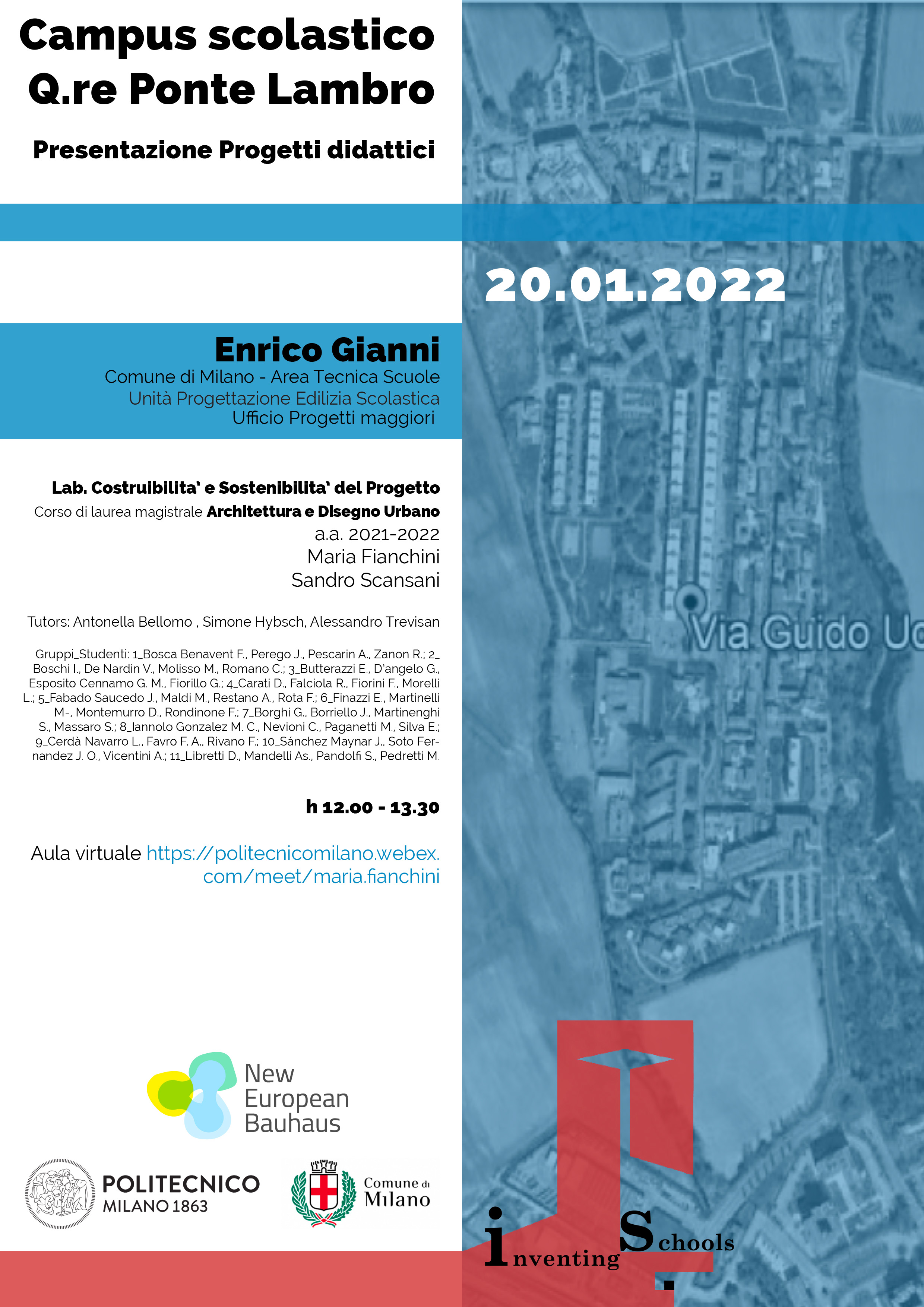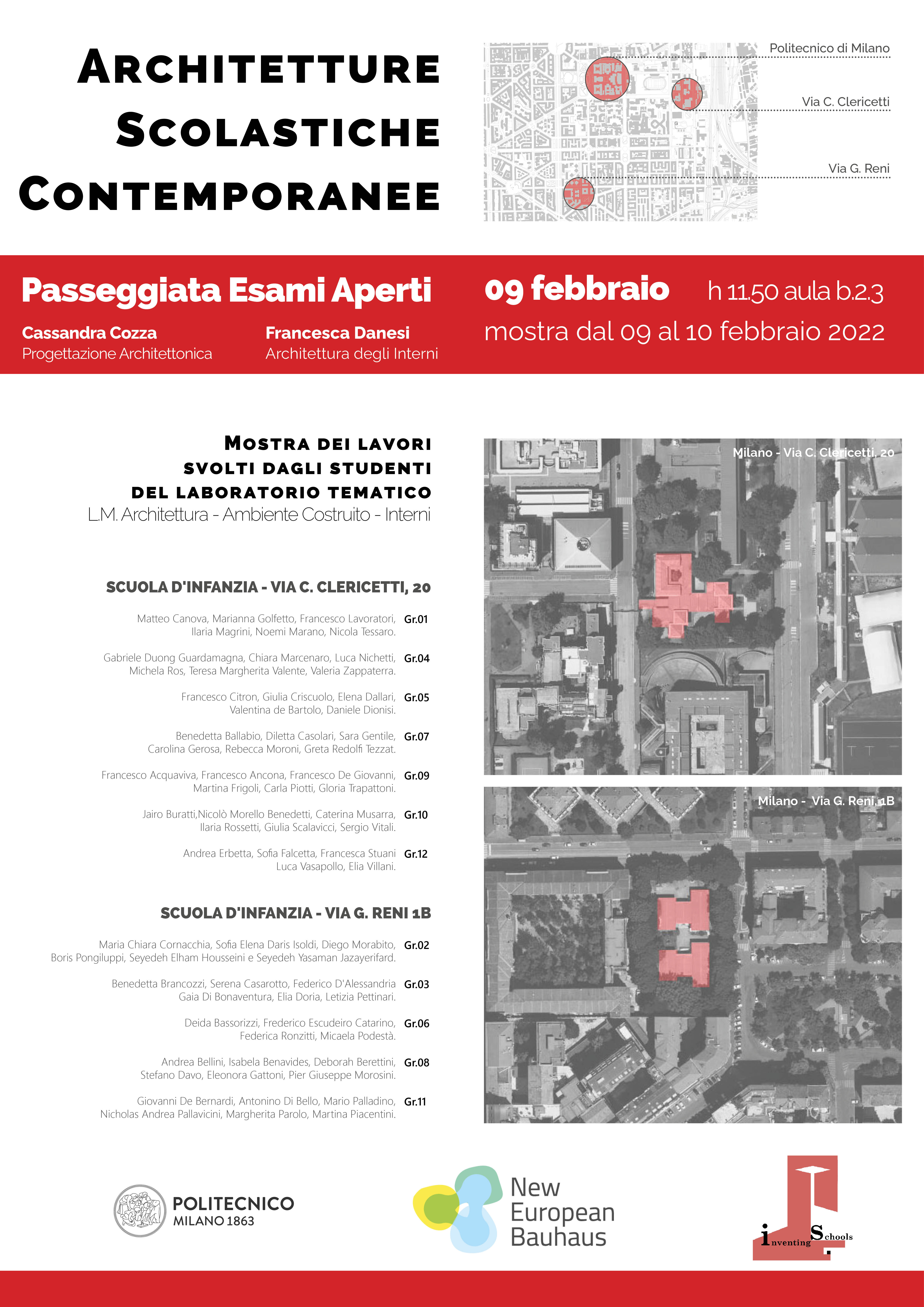 “Inventing schools” è una piattaforma di sperimentazione didattica dedicata al tema della scuola. È aperta ai corsi, ai laboratori e alle tesi di laurea e ha come scopo favorire il confronto tra Amministrazione comunale e Scuola AUIC, offrendo ai numerosi docenti che si occupano del tema della scuola la possibilità di lavorare in modo coordinato su alcuni casi studio concordati con l’Assessorato all’Edilizia Scolastica del Comune di Milano.